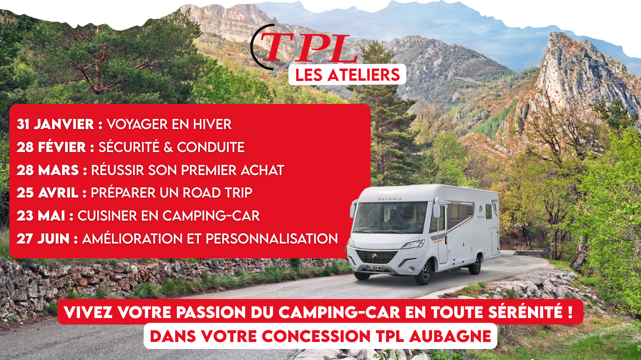 Découvrez nos ateliers exclusifs pour camping-caristes dans votre concession TPL Aubagne. Chaque mois, nous vous proposons des sessions pratiques et conviviales pour maîtriser l’art du voyage en camping-car, améliorer votre confort et partager des conseils d’experts. Inscription obligatoire pour garantir votre place !